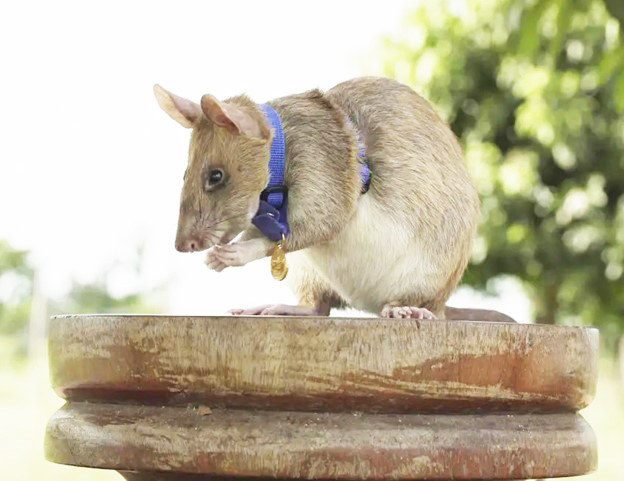One of the world’s great underreported tragedies is how much of the Earth is covered in landmines and unexploded ordinance from past conflicts. This removes productive farmland from use, lying dormant with the potential to kill and maim for decades after being embedded in the ground, their deadly, indiscriminate effects are most often felt among children, who see strange metal objects among the grass and mistake them for toys. Trained to sniff landmines Hero Rats were first deployed to Mozambique, the first nation since the 20th century began to be declared mine-free. Over the course of APOPO’s work the rats it employs (and pampers) have safely located over 106,000 mines. Even though they’re one of the world’s largest rats, they are too small to trigger the detonation of mines.