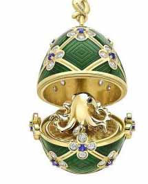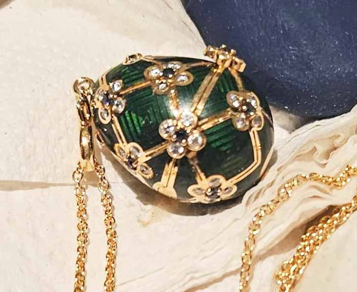 However, somebody noticed. The man is now in police custody under constant monitoring. “Given this man is in police custody, we have a duty of care to continue monitoring him given the circumstances of what has occurred. The stolen piece was still an authentic Fabergé egg, though. It forms part of a limited-edition egg locket made to commemorate the James Bond, 007, movie Octopussy. In the movie, a Fabergé egg is a significant plot device. This locket is made to resemble the one in the movie. The egg locket is about three inches tall. It’s fashioned out of 18-karat gold, painted with green enamel paint. Within the eggshell are inlaid 60 white diamonds, two black diamonds, and 15 sapphires. As is tradition with Fabergé eggs, inside the locket is a surprise — a golden octopus figure to tie in with the movie. To top it all off, the locket hangs on a gold chain. Altogether, it’s worth $16,500.